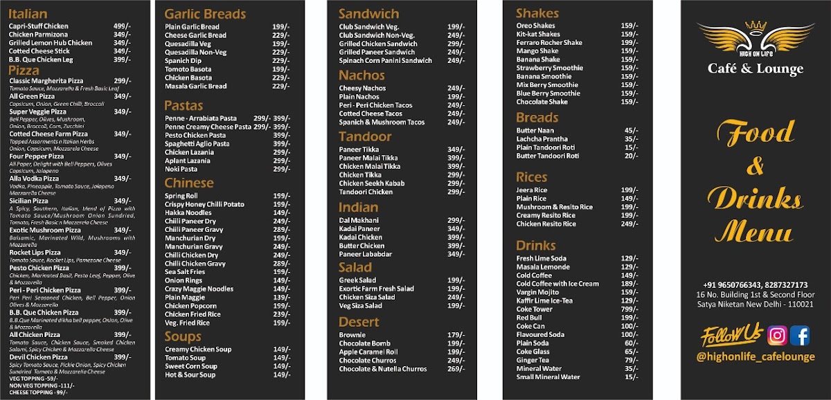 Welcome to HIGH ON LIFE CAFE&LOUNGE, a hidden gem nestled on Bandh Road in Satya Niketan, New Delhi. This café is not just a dining venue; it's an experience that balances a delightful atmosphere, delectable food, and upbeat music that sets the perfect backdrop for your outings.